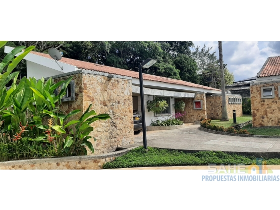 Venta hermosa casa Campestre en Condominio de una Planta, en el exclusivo sector campestre de Pance. Rodeada de naturaleza y de tranquilidad. Esta bella propiedad esta distribuida en ante jardín con garaje paralelo cubierto para dos vehículos, depósito, sala comedor, estudio, cocina con isla, alacenas, patio de ropas y zona de oficios con un amplio cuarto de servicio con baño y clóset, una amplia zona verde con jardines ornamentales con jacuzzi. Volviendo al interior esta el baño social con ducha, Star de televisión o cuarta habitacion con bibliotecas, tres alcobas muy amplias con clóset y baño, la principal con vestier. Pisos en marmol, acabados en madera fina. El condominio cuenta con piscina y salón social y bellos jardines por donde pasa una acequia. Esta casa le corresponde también un apartaestudio de un ambiente en segundo piso con cocineta baño y balcón. Se venden también las tres casas que conforman el condominio juntas. Lista para escriturar. Cuenta con aljibe propio.